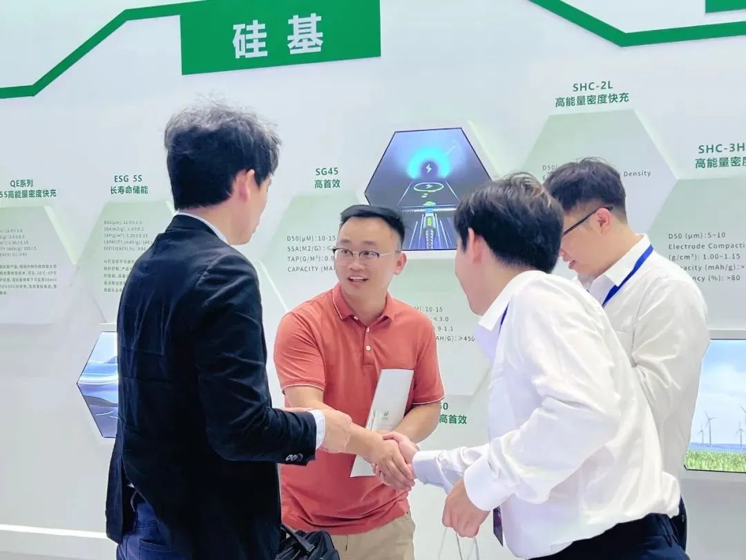 杉杉科技展位占據2號館C位,現場人潮涌動,交流區域一“座”難留。在為期三天的展會上,杉杉科技研發和技術骨干現場介紹杉杉科技自主研發的石墨、硬炭、硅基負極等重點產品,吸引眾多國內外行業專家及客戶駐足觀看交流、探討合作。