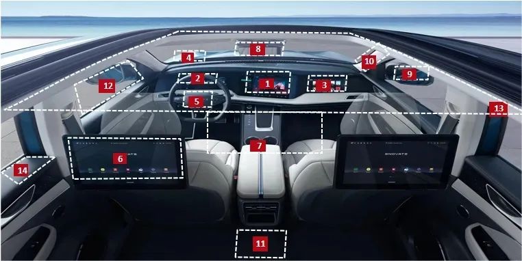 有相關(guān)機(jī)構(gòu)預(yù)測,未來1-2年,主機(jī)廠單車平均屏幕搭載數(shù)量或?qū)⑦_(dá)到7個,“液晶儀表+中控屏+抬頭顯示屏(HUD)”將成標(biāo)配,副駕娛樂屏、流媒體后視鏡、電子外后視鏡等將成為主要選配產(chǎn)品。