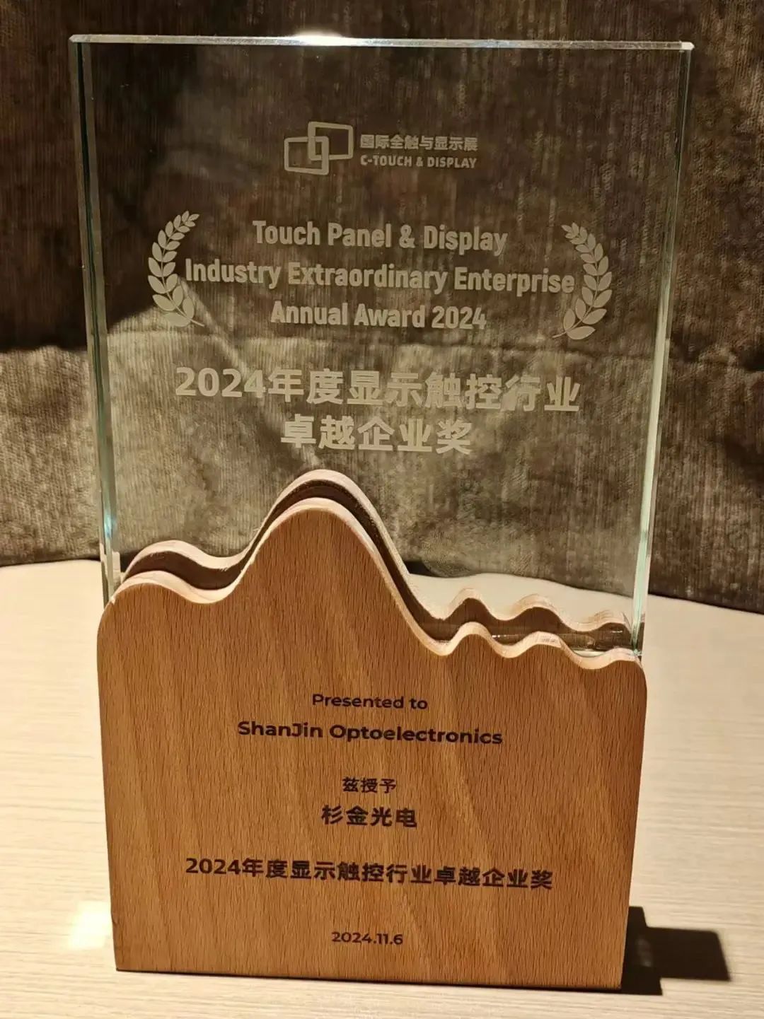 2024 年 11 月 6 日至 11 月 8 日,國際全觸與顯示展在深圳國際會展中心盛大舉辦。杉金光電攜高端車載偏光片、OLED手機用偏光片等多項創新型產品亮相,并榮獲 2024 年度顯示觸控行業卓越企業獎。