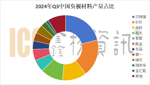 2024年Q3鋰電負極:上海杉杉人造石墨負極穩居第一